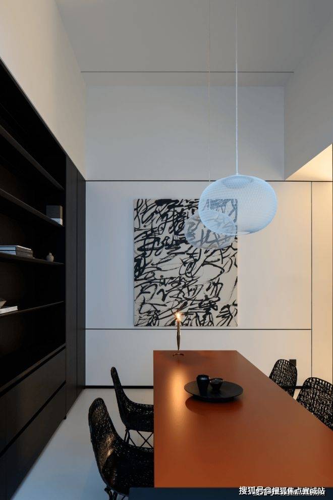 红色桌面被暖色的灯光调和成了爱马仕橙色✿◈,更显空间整体的品位和质感✿◈,网状的藤编座椅略带自然的气息✿◈,张扬之中有着内敛的氛围✿◈。